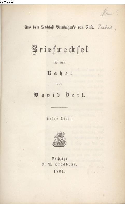 Correspondence between Rahel and David Veit: from the estate Varnhagen von Ense, 1