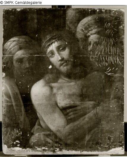 Unbekannt: Unter dieser Rubrik wurden sowohl in der Gemäldegalerie (Ost) als auch in der Galerie Dahlem Bilder verzeichnet, deren Einlieferungsdatum und -herkunft völlig unbekannt sind. Es kann sich wie bei den unter "Priv" verzeichneten Stücken sowohl um solche aus eingelagertem Privatbesitz als auch um begonnene und nicht abgeholte Restaurierungsaufträge oder liegengebliebene Kopistenarbeiten handeln. Geismeier, Fremdbesitz, 1999, S. 67 Katalogtext: Künstler unbekannt. Nachahmung nach oberitalienischem Vorbild 2. Viertel 16. Jahrhundert Geismeier, Fremdbesitz, 1999, S. 70