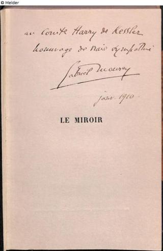 Dedication Author: "au comte Harry de Kessler, hommage de nais[?] sympathie, Gabriel Mourey, janv. 1910", half-title page