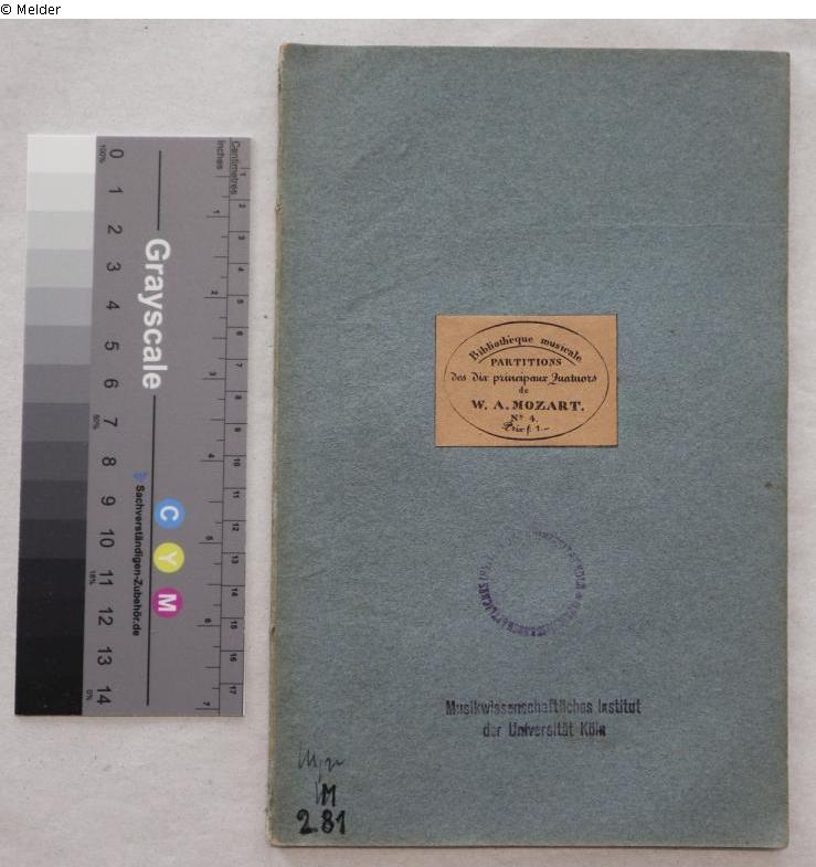 Circular stamp: "Musikwissenschaftliches Institut der Universität Köln"; stamp: "Musikwissenschaftliches Institut der Universität Köln"; handwritten inventory number: "13,366";
