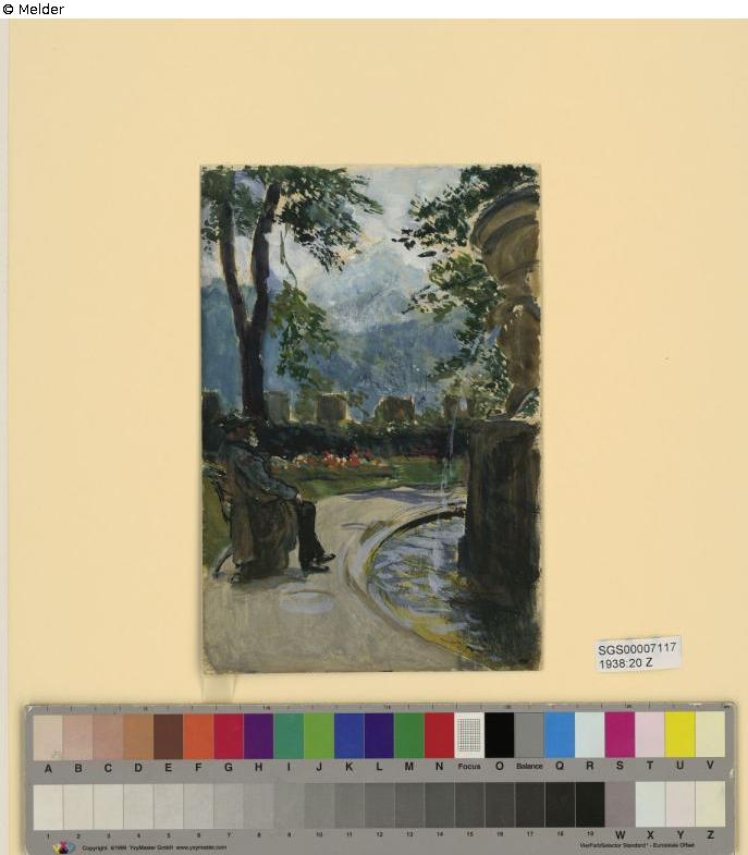 Passe-partout cut-out side, each with pencil: bottom left: "M. Slevogt"; bottom right: "Inv. No. 1938:20" [inventory number SGSM]