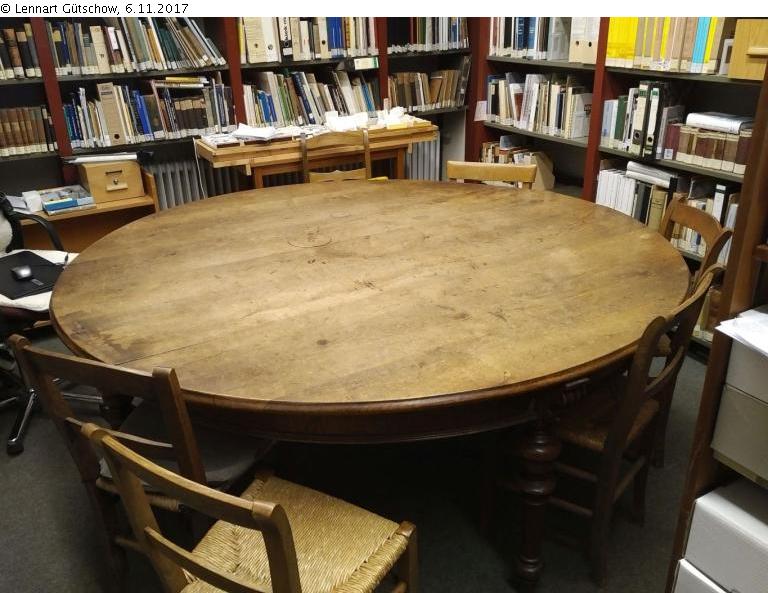 According to oral tradition, the table is said to come from the Leeran Freemason Lodge "Georg zur wahren Brudertreue", which was newly founded in 1857/59 and which was forced to be dissolved in 1934. The table is not mentioned in the list of confiscated property, the list of losses or in the application for restitution of the Lodge, which was re-established in 1947 (NLA Aurich, Rep. 16/1, No. 992 (confiscation of property of anti-state organisations), No. 999 (dissolution of the Freemason Lodges) and Rep. 107, No. 2184 on property and Rep. 252, No. 2357 on financial compensation of the Lodge).