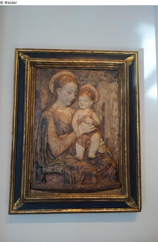 Relief of the virgin with Jesus, painted plaster