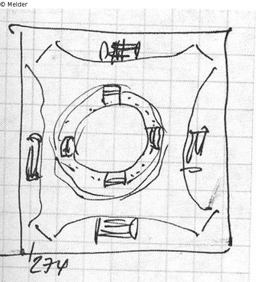 Architektonische Entwürfe zum Denkmal des Großen; Die Entwürfe sind vermutlich im Rahmen des ersten Wettbewerbs für ein Friedrichdenkmal 1791 entstanden, wurden von Rustad jedoch erst im Jahr 1798 - während eines Berlinaufenthalts - der Akademie zur Ausstellung eingereicht. Entwürfe verschiedener Grundrisse; Vier Blatt mit verschiedenen Grundrissen. Unter derselben Nummer; Blatt 15: Bez.: 274