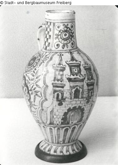 Search Request | Object report Faience jug Lost Art-ID295895 Previous Next Artist / Creator Unknown TitleFaience jugObject typeVesselGroup of reported objectsVesselMaterial / TechniqueCeramics ; Glaze (Faience)Published since2003 Contact Stadt- und Bergbaumuseum Freiberg Am Dom 1 09599 Freiberg Germany Phone+49 (0) 3731 20250 Fax+49 (0) 3731 23197E-Mailinfo@museum-freiberg.deHomepagehttp://www.museum-freiberg.de/, Contact Dr. Ulrich ThielPositionDirektorPhone+49 (0) 3731 202511E-Mailulrich_thiel@freiberg.de