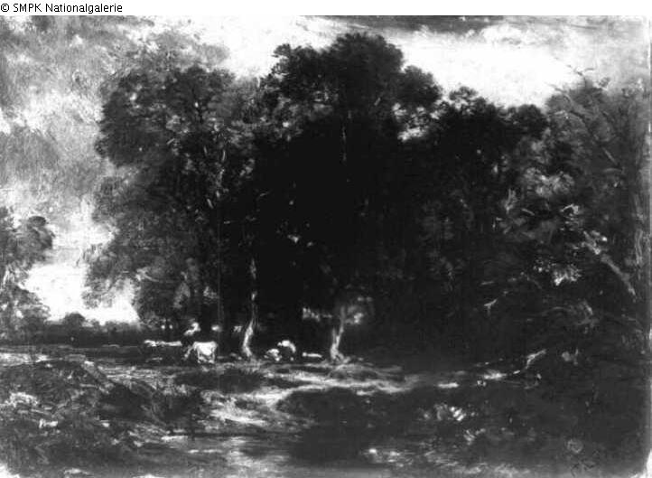 Panel painting: Depiction: Forest & Cattle & Watercourse
