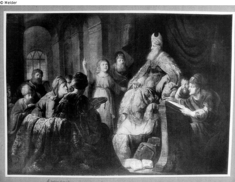 Search Request | Object report Hohepriester mit Anhängern / Hoogepriester en volgelingen Lost Art-ID405018 Previous Next Artist / Creator Rijn, Rembrandt Harmensz. van (Schule) Birth 1606.07.15, Leiden Death 1669.10.04, Amsterdam Place of activityLeiden; Amsterdam TitleHohepriester mit Anhängern / Hoogepriester en volgelingenObject typePaintingGroup of reported objectsPaintingMaterial / TechniqueCanvas / painted Height 105.00 cm Width 145.00 cm Description In reichem Ordonat, inmitten von Sitzenden, unterhält sich ein Hohepriester mit seinen Jüngern. Read more Read less Provenance Versteigerung bei Marle & Bignell, Niederlande, 1.7.1941 (Nr.23) Read more Read less Published since2008 Contact von Trott zu Solz LammekPositionRechtsanwälte NotarPhone+49 (0) 30 59 00 33 0-0E-Mailkanzlei@vontrott-lammek.de