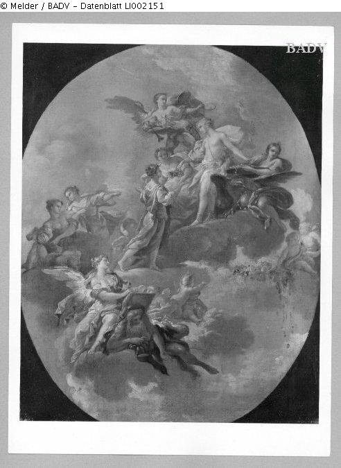 mythological depiction in the clouds, ceiling sketch, half-oval (formerly attributed to Johann Georg Platzer)