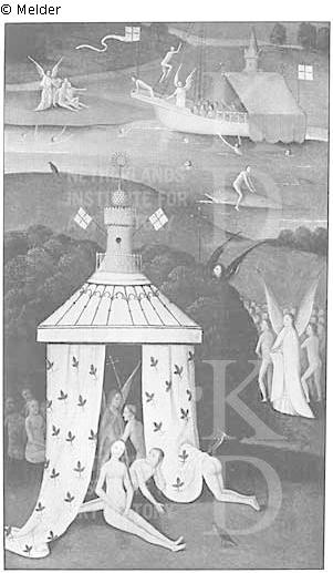 Quelle: Karl Arndt: Zur Ausstellung "Jheronimus Bosch" 's'Hertogenbosch 1967. In: Kunstchronik. 21(1968)1, S. 1-21 (als Nachfolger); NL - Rijksbureau voor Kunsthistorische Documentatie (RKD), documentation; Charles de Tolnay: Two Drawings after a Lost Triptych by Hieronymus Bosch. In: Record of the Art Museum, Princeton University. 20(1961)2, S. 43-48, Abb. 5 und 6; Charles de Tolnay: Hieronymus Bosch. Baden-Baden 1965. Band 1, Abb. gegenüber S. 90. Band 2, S. 344-345. Kat. Nr. 6 a (als Hieronymus Bosch); Gerd Unverfehrt: Hieronymus Bosch. Die Rezeption seiner Kunst im frühen 16. Jahrhundert. Berlin 1980. S. 219, 244-245, Nr. 13, Abb. 204; explore.rkd.nl/explore/images/56525; explore.rkd.nl/explore/images/56524