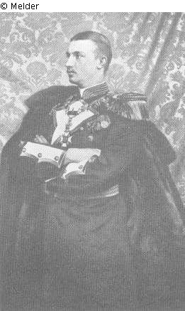 Kniestück, Dreiviertelporträt nach rechts mit verschränkten Armen, vor einem gemusterten Vorhang; Uniform mit hellen Aufschlägen, mehrere Orden; Signatur: Max Koner 98; Maße: 141 x 101 cm