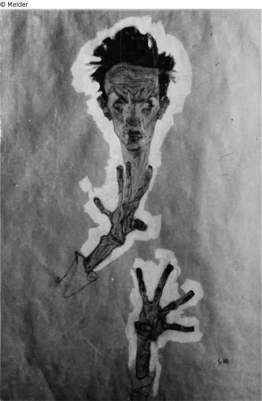 File card no. 131: Egon Schiele, self-portrait, watercolor, 43 x 30 cm