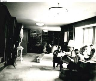 The sculpture in the library, Neumühle Castle, postcard, 1943-45, Hausarchiv der Grafen von der Schulenburg-Wolfsburg, 670 (postcards with three motifs, including exterior and interior views of Neumühle Castle)