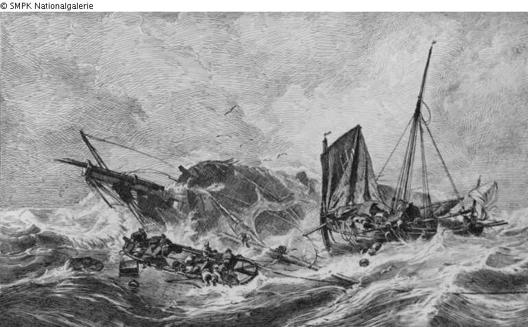Panel painting: Picture: Sailing ship, sailing boat : Shipwreck; Shipwreck & sea storm