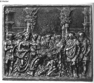 Search Request Judith mit dem Haupt des Holofernes Artist / Creator Briosco, Andrea Object type Medal / badge Material / TechniqueMetal (Bronze) / reliefedLost Art-ID410116