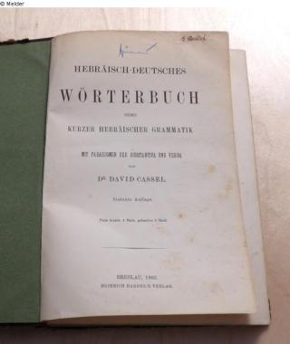 Found-Object Report Hebräisch-Deutsches Wörterbuch Author Cassel, David Publisher Schletter Object type Book Lost Art-ID273545