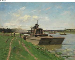 Found-Object Report Seine landscape with dredging boats Bateau-dragueurs à la Seine Artist / Creator Delpy, Camille Hippolythe Object type Painting Material / TechniqueOil ; Canvas / paintedLost Art-ID627583