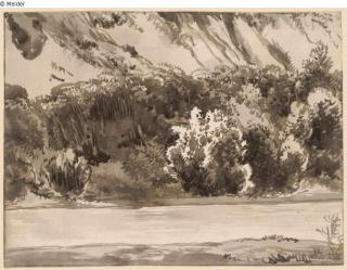 Found-Object Report Bushes on a river bank Artist / Creator Kobell, Franz Innocenz Josef Object type Drawing Material / TechniquePaper ; Ink brown-grey / drawn ; washedLost Art-ID601676