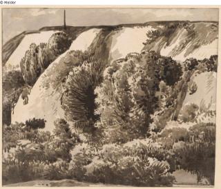 Found-Object Report Overgrown steep slope, like cascades Artist / Creator Kobell, Franz Innocenz Josef Object type Drawing Material / TechniquePaper ; Ink brown-grey / drawn ; washedLost Art-ID601679