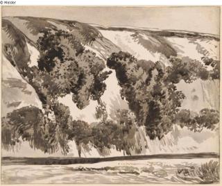 Found-Object Report Overgrown steep slope, a river below Artist / Creator Kobell, Franz Innocenz Josef Object type Drawing Material / TechniquePaper ; Ink brown-grey / drawn ; washedLost Art-ID601680