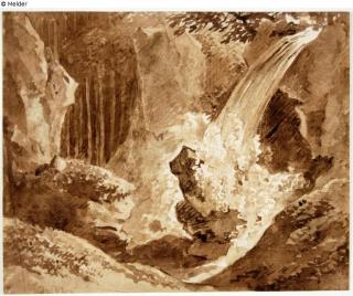 Found-Object Report Waterfall in the forest Artist / Creator Kobell, Franz Innocenz Josef Object type Graphic Material / TechniqueGraphite ; Colour sepia / drawn (brush)Lost Art-ID579260