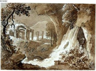 Found-Object Report Waterfall next to ruins, front left observer Artist / Creator Kobell, Franz Innocenz Josef Object type Drawing Material / TechniqueColour black, brown ; Graphite / drawn (pen-and-ink drawing)...Lost Art-ID579261