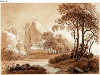 Found-Object Report Ideal landscape with ponds, trees and hut in front of rocks Artist / Creator Kobell, Franz Innocenz Josef Object type Drawing Material / TechniqueGraphite ; Colour black, sepia / drawn (pen-and-ink drawing)...Lost Art-ID579266