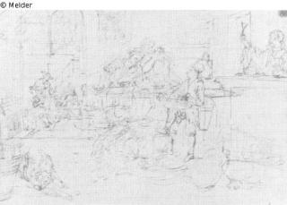 Pencil ; Paper (Wove paper) slightly coloured / drawn