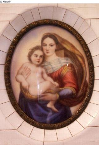 Found-Object Report Madonna Artist / Creator Santi, Raffaello (Raffael) (Kopie nach) Object type Miniature Material / TechniqueGouache ; Ivory / paintedLost Art-ID298580