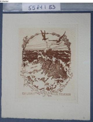 Found-Object Report Bookplate Lia Tedeschi Artist / Creator Schütz, Erich Object type Exlibris Material / TechniquePrinting ink brown ; Paper / printed (etching)Lost Art-ID596600