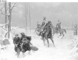 Found-Object Report Winter landscape with three Ulans and two imprison Artist / Creator Sell, Christian Object type Painting Material / TechniqueOil ; Canvas / paintedLost Art-ID219716