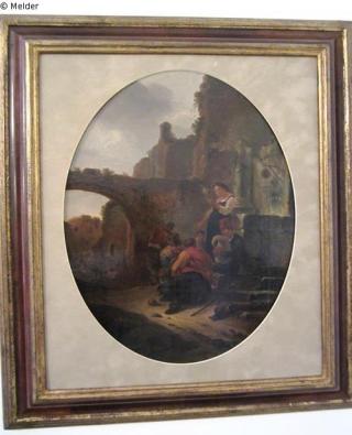 Found-Object Report Italian folk scenes / bagpiper in front of a village fountain Artist / Creator Thomas Wyck Object type Painting Material / TechniqueOil ; Panel / paintedLost Art-ID532820