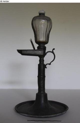 Found-Object Report Oil lamp with graduation Artist / Creator Unknown Object type Light / lamp Material / TechniqueMetal (Pewter) ; GlassLost Art-ID578000
