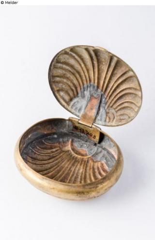Found-Object Report Moneybox in shell shape Artist / Creator Unknown Object type Container Material / TechniqueMetal (Brass sheet) / repousséLost Art-ID578012