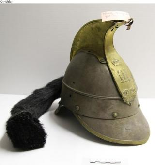 restituted Found-Object Report Royal Bavarian cuirassier helmet with monogram Maximilian Artist / Creator Unknown Object type Crafts and other folk arts Material / TechniqueMetal (Iron) ; Metal (Brass) ; Leather ; HorsehairLost Art-ID578027