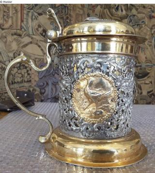 Found-Object Report Lidded tankard Artist / Creator Körner, Gottfried Object type Vessel Material / TechniqueMetal (Silver) / repoussé ; cast ; sawn ; repoussé ; gildedLost Art-ID595035