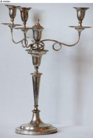Found-Object Report Three-armed silver candlestick Artist / Creator Hues, Johann Object type Light / lamp Material / TechniqueMetal (Silver) / cast ; mounted ; repoussé ; soldered...Lost Art-ID626414