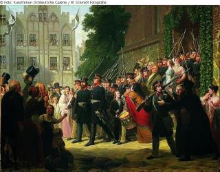 Found-Object Report Departure of the East Prussian Landwehr into the field 1813 Artist / Creator Graef, Gustav Object type Painting Material / TechniqueOil ; Canvas / paintedLost Art-ID592583