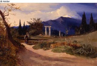 Found-Object Report Sicilian landscape in evening atmosphere with view of the Ätna Artist / Creator Blechen, Karl Object type Painting Material / TechniqueOil ; Canvas / paintedLost Art-ID581602