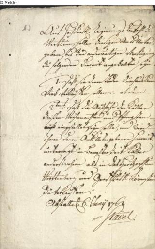Found-Object Report Vertrag über einen Haustausch zwischen Gregorius Steinbach und dem Schutzjuden Samuel Wolff, beide zu Neudenau Object type Records and documents Lost Art-ID595938