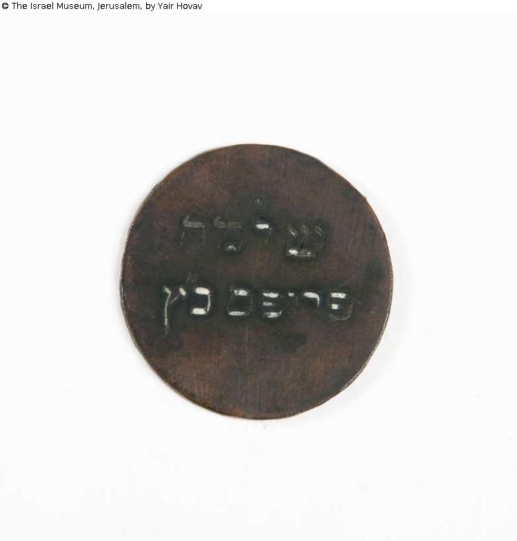 Fundmeldung | Einzelobjekt Burial society token Lost Art-ID573112 Vorherige Weiter Link to item in IMJ siteLink to the main site TitelBurial society tokenHerstellungsortPoland (?) Datierung1701/1800ObjektartKunsthandwerk / -gewerbeObjektgruppeKunsthandwerk / -gewerbeMaterial / TechnikCopper / engravedInventarnummerB50.02.1582;191/018Beschreibung Object Name: Burial society tokenSubject: Hevra Kadisha equipmentInscribed in Hebrew: "Shlomo Propis Katz" Weiterlesen Weniger anzeigen BestandJudaicaProvenienz Received through JRSO (Jewish Restitution Successor Organization)Wiesbaden collecting point number: V55 Weiterlesen Weniger anzeigen Veröffentlicht seit10.01.2018 Kontakt Israel Museum POB 71117 9171002 Jerusalem Israel Tel972-2-6708811Fax972-2-5631833E-Mailinfo@imj.org.il Ansprechpartner:in Bareket MannPositionRegistrarE-Mailbareket@imj.org.il