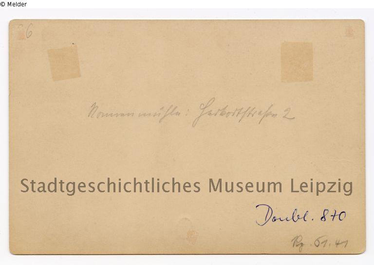 1890 – o.D., Verlag Hermann Vogel, Leipzig; […]; o.D. – 20.08.1930, Carl Sonntag (* Leipzig, 21.07.1883 – 20.08.1930, Berlin), Leipzig/Berlin; 20.08.1930 – 10.04.1941, Laura Sonntag (geb. Kern, *Chicago 22.10.1893 – 11/1979, New York), Ehefrau von Carl Sonntag, erworben im Erbgang von ihrem Ehemann, Leipzig/New York; frühestens ab 10.04.1941 – 18.08.1941, Deutsches Reich und Versteigerungshaus Hans Klemm, Leipzig; seit 19.08.1941, Stadtgeschichtliches Museum Leipzig, erworben im Rahmen der Auktion des Versteigerungshauses Hans Klemm