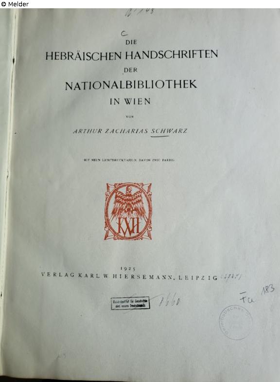 Die hebräischen Handschriften der Nationalbibliothek in Wien