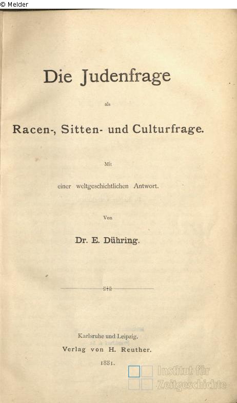 Die Judenfrage als Racen-, Sitten- und Culturfrage