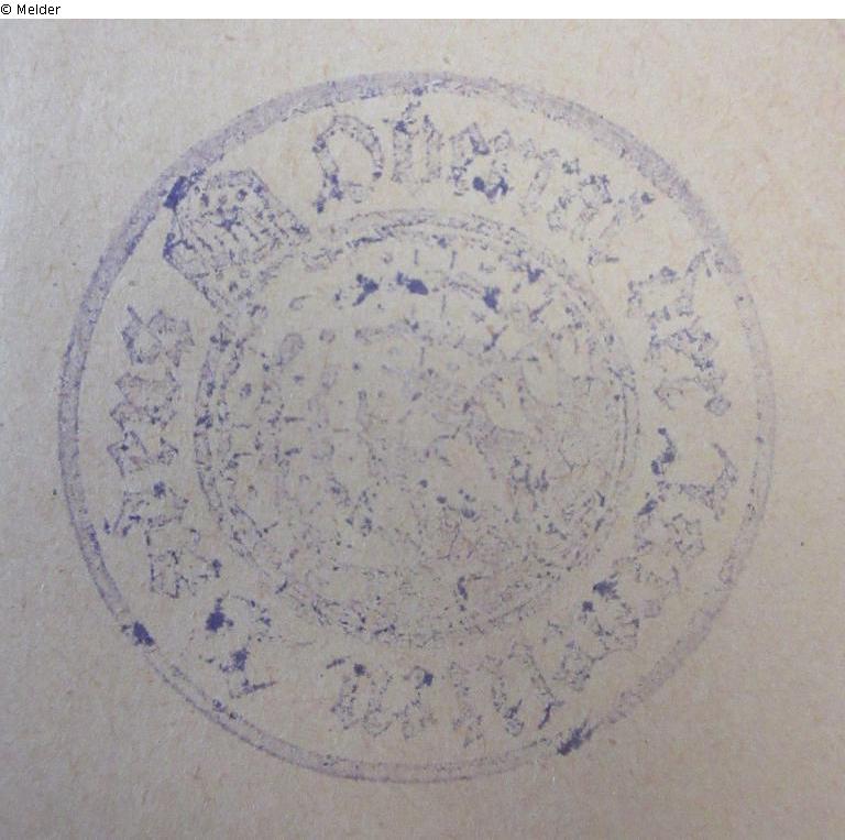 Bibliotheksgut; Runder Stempel mit der Schrift "Oberrat der Israeliten Badens", dem badischen Staatswappen und weiteren, nicht erkennbaren Details.