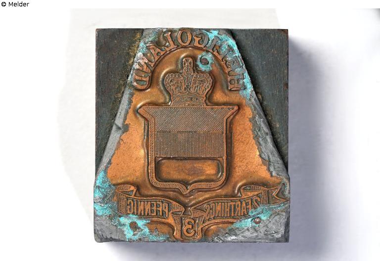 Fundmeldung | Einzelobjekt Druckstock für die Ganzsache Streifband (Altdeutschland, Helgoland), 2 Farthings / 3 Pfennig, MiNr. S 1 (b) Lost Art-ID630133 Vorherige Weiter Hersteller/Künstler:in Unbekannt TitelDruckstock für die Ganzsache Streifband (Altdeutschland, Helgoland), 2 Farthings / 3 Pfennig, MiNr. S 1 (b) Datierung1878 - 1890ObjektartPhilatelieObjektgruppePhilatelieMaterial / TechnikMetall (Kupfer) ; Metall ; Holz Höhe 2,34 cm Breite 3,78 cm Tiefe 4,15 cm Gewicht 66,00 g Inventarnummer3.2011.3265Beschreibung beschädigt Weiterlesen Weniger anzeigen Provenienz Unbekannt Weiterlesen Weniger anzeigen Veröffentlicht seit16.07.2025 Kontakt Museumsstiftung Post und Telekommunikation Museum für Kommunikation, Berlin Leipziger Straße 16 10117 Berlin Deutschland Tel+49 (0)30 202 94 0Fax+49 (0)30 202 94 111E-Mailmfk-berlin@mspt.deHomepagehttps://www.museumsstiftung.de Ansprechpartner:in Dr. Veit DidczuneitPositionAbteilungsleiter SammlungenTel+49 (0)30 71302 710E-Mailv.didczuneit@mspt.de