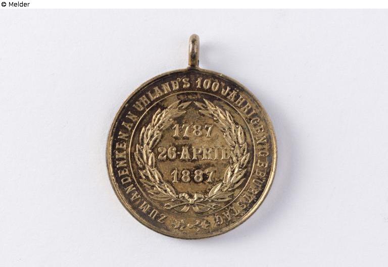 Fundmeldung | Einzelobjekt Gedenkmünze zum Andenken an Uhlands 100 jährigen Geburtstag 1787, 16. April 1887 Lost Art-ID578032 Vorherige Weiter TitelGedenkmünze zum Andenken an Uhlands 100 jährigen Geburtstag 1787, 16. April 1887 Datierung1887ObjektartMünzeObjektgruppeNumismatikMaterial / TechnikMetall (Silber) / vergoldet Durchmesser 3,00 cm Inventarnummer3134/aProvenienz Ankauf 1933 durch den Kunst- und Altertumsverein e.V., Tübingen, für 6 RM, Vorbesitzer unbekannt.1941 mit Auflösung des Vereins in den Besitz der Städtischen Sammlung übergegangen. Weiterlesen Weniger anzeigen Veröffentlicht seit12.07.2018 Kontakt Stadtmuseum Tübingen Kornhausstr. 10 72070 Tübingen Deutschland Tel+49 (0)7071 204 1711Fax+49 (0)7071 204 1797E-Mailstadtmuseum@tuebingen.deHomepagehttp://www.tuebingen.de/stadtmuseum Ansprechpartner:in Frau Wiebke Ratzeburg PositionLeitung StadtmuseumTel+49 (0)7071 204 1794E-Mailwiebke.ratzeburg@tuebingen.de Ansprechpartner:in Frau Daniela ÜbelhörPositionSammlungsbetreuerinE-Maildaniela.uebelhoer@tuebingen.de