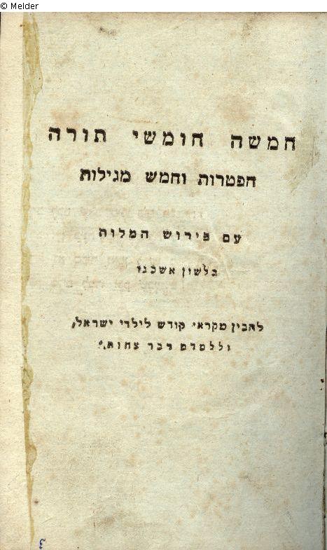 Ha-mishnah humshei torah, haftarot we-hamesh megilot im pirush ha-malot be-lashon ashkenaz (Die Mischna zum Pentateuch mit Haftarot und den fünf Megilot mit Kommentar in deutscher Sprache)