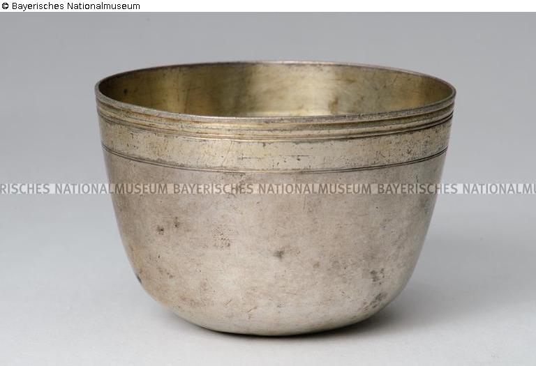 Befund: Auf der Unterseite des Bodens: Meisterzeichen 'PS in Queroval', für Paul Solanier (Meister um 1665, gest. 1724); Beschauzeichen 'Pyr', für Augsburg, 1707-1711; Tremolierstich; handschriftlich mit roter Farbe "40/32" (Inv.-Nr. des Bayerischen Nationalmuseums)./A.G., 2018