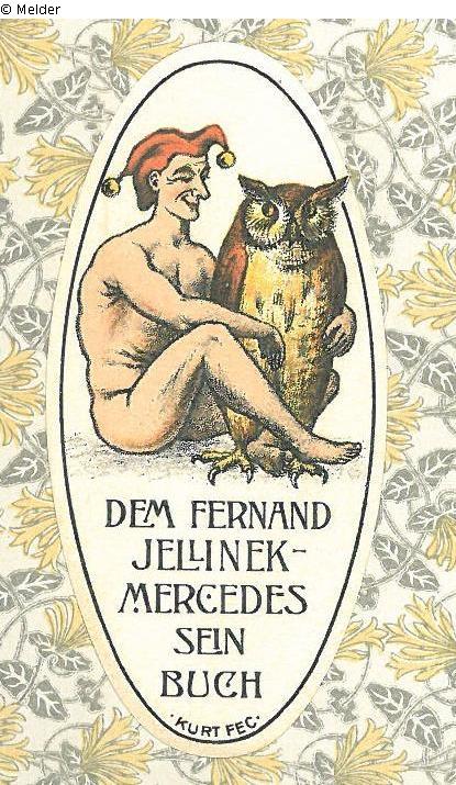 NS-Raubgut 1.) Ankauf durch die Pfälzische Landesbibliothek beim Antiquariat Hauswedell, Hamburg für 28,75 DM. Akzession: 2. 12.1949 2.) Exlibris "Dem Fernand Jellinek-Mercedes sein Buch": Jellinek-Mercedes, Raoul Fernand, geb. 18.6.1888 Algier, gest. 10.2.1939 Baden bei Wien (Selbstmord). Österreichischer Schriftsteller.