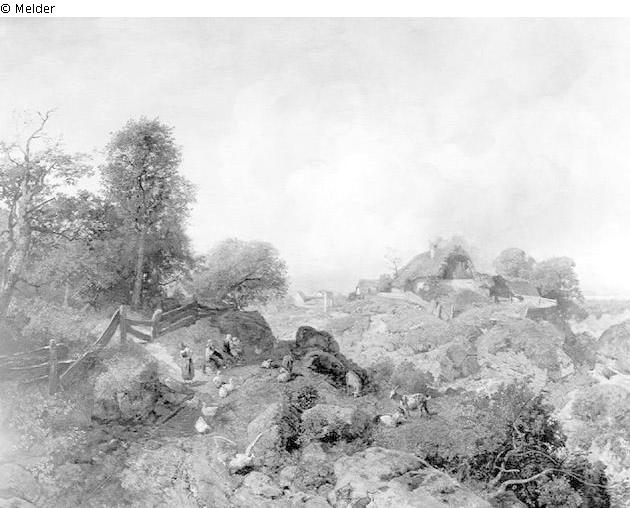 Landschaft mit Bauerngehöft und Staffage